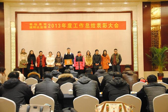 2014年1月12日,君怡景觀(guān)、建明達監理在江蘇海州灣國際會(huì )議中心召開(kāi)了2013年度年終總結表彰大會(huì )。總結公司2013年取得的成績(jì)和經(jīng)驗,部署2014年重點(diǎn)工作,同時(shí)表彰2013年度先進(jìn)集體和優(yōu)秀人員??偣径聲?huì )領(lǐng)導李清洋、王家松、徐遠航,君怡景觀(guān)公司總經(jīng)理陳維翔、建明達監理公司總經(jīng)理姚加千,君怡景觀(guān)公司副總經(jīng)理范偉,公司副總經(jīng)理劉新吉、各部門(mén)經(jīng)理及全體員工參加了大會(huì )。