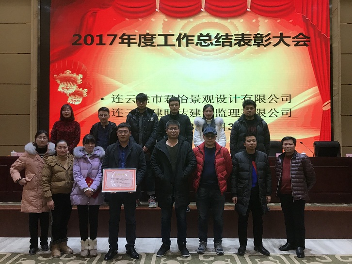 大會(huì )開(kāi)始,君怡景觀(guān)公司總經(jīng)理宣布“摜蛋比賽”獲獎人員名單并頒發(fā)獎品。君怡景觀(guān)公司副總經(jīng)理宣讀了景觀(guān)公司《關(guān)于表彰2017年度優(yōu)秀項目和優(yōu)秀人員的決定》。建明達監理公司總工宣讀了監理公司《關(guān)于表彰2017年度優(yōu)秀監理部、優(yōu)秀人員的決定》。董事會(huì )領(lǐng)導、各公司領(lǐng)導為受表彰先進(jìn)集體和個(gè)人頒發(fā)了榮譽(yù)證書(shū)和獎金,并同獲表彰人員一起合影留念。