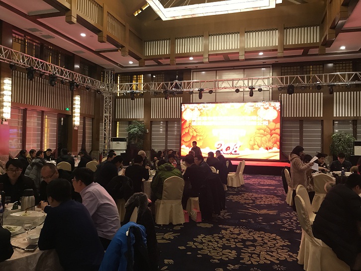 晚七時(shí)新春團拜晚宴準時(shí)在宴會(huì )大廳開(kāi)始,公司領(lǐng)導與全體員工一同參加了晚宴。員工還自發(fā)排練了一臺春節聯(lián)歡晚會(huì ),有歌曲、有舞蹈、有朗誦,節目異彩紛呈,為晚宴增加了歡樂(lè )的氣氛。
