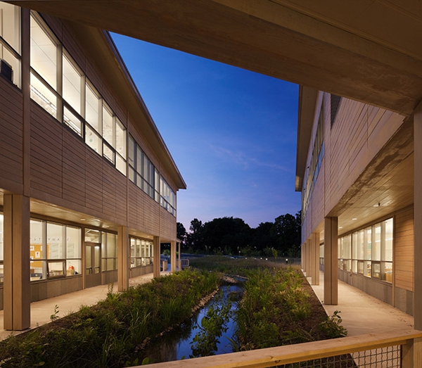 該學(xué)校滿(mǎn)足了以下幾個(gè)目標:1.達到LEED?評級系統標準(通過(guò)減少雨水的峰值速率和體積,保證1-2年的暴雨不受