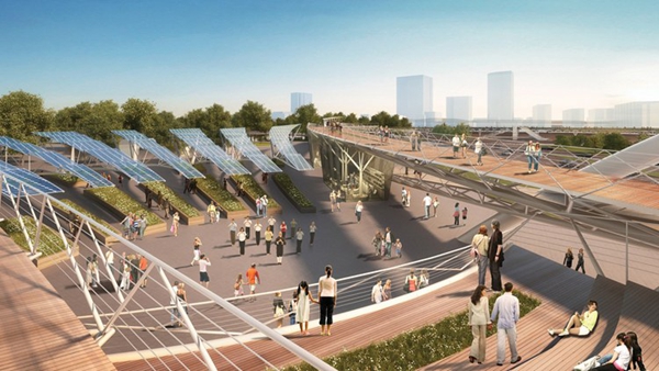設計師為龍之翼項目開(kāi)發(fā)了零碳策略,充分利用風(fēng)能、太陽(yáng)能和人力發(fā)電,旨在成為中國第一個(gè)零碳高架平臺式步行系統。項目設計中采用了風(fēng)力渦輪機、光伏板和動(dòng)能地磚。這些創(chuàng )新措施以及舒適的行人通行空間,為這一繁忙地區提供了先進(jìn)的交通解決方案,它強勁的活力將使長(cháng)寧區呈現更新穎的面貌。