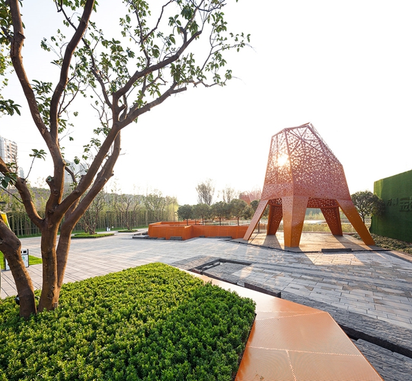 從入口廣場(chǎng)的雕塑,“Z”形小道,再到蜿蜒的水景、拐角平臺最終到達銷(xiāo)售中心,整個(gè)公園就是一個(gè)連續的快樂(lè )旅程。