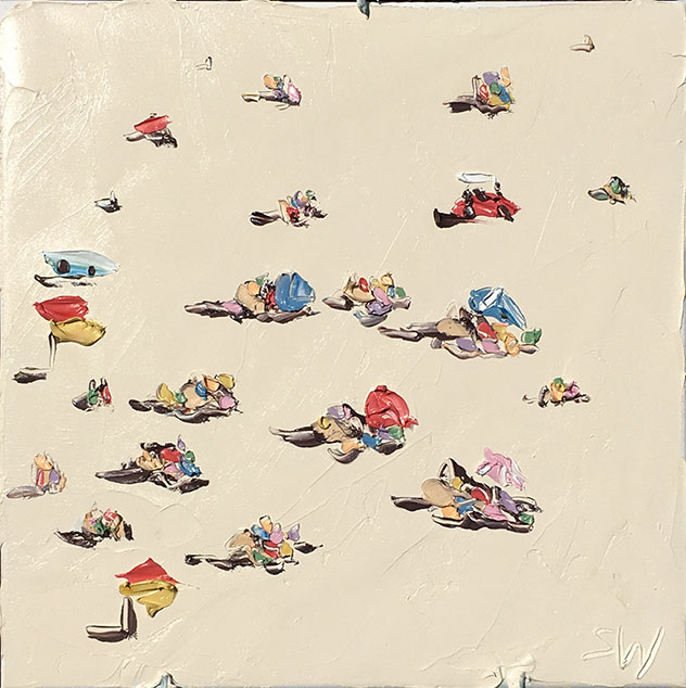 Sally West是澳大利亞最知名的藝術(shù)家之一,她的作品頗受?chē)H藏家的青睞。這里為大家展示她的最新創(chuàng )作海灘系列。自由奔放的涂抹盡顯夏日海灘休閑風(fēng)情。精準嫻熟的色彩與恣意的觸痕,讓雖是色塊的展現的畫(huà)面如此鮮活生動(dòng),仿佛可以聽(tīng)見(jiàn)海浪聲聲與人聲鼎沸。
